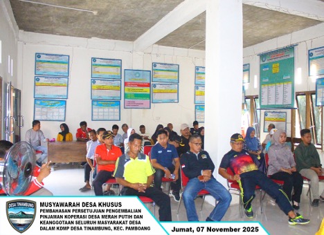 MUSDES KHUSUS DESA TINAMBUNG BAHAS DUKUNGAN PENGEMBALIAN PINJAMAN KOPERASI DESA MERAH PUTIH (KDMP)