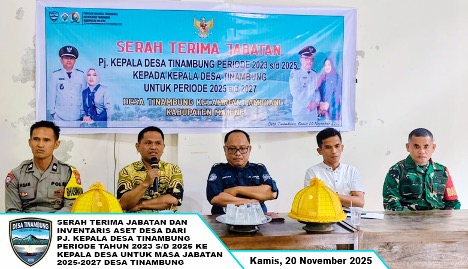 SERAH TERIMA JABATAN DAN INVENTARIS ASSET DARI Pj. KEPALA DESA TINAMBUNG PERIODE 2023 s/d 2025 KEPADA KEPALA DESA TINAMBUNG PERIODE 2023-2025 BERLANGSUNG KHIDMAT